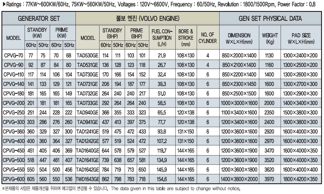볼보 디젤엔진발전기