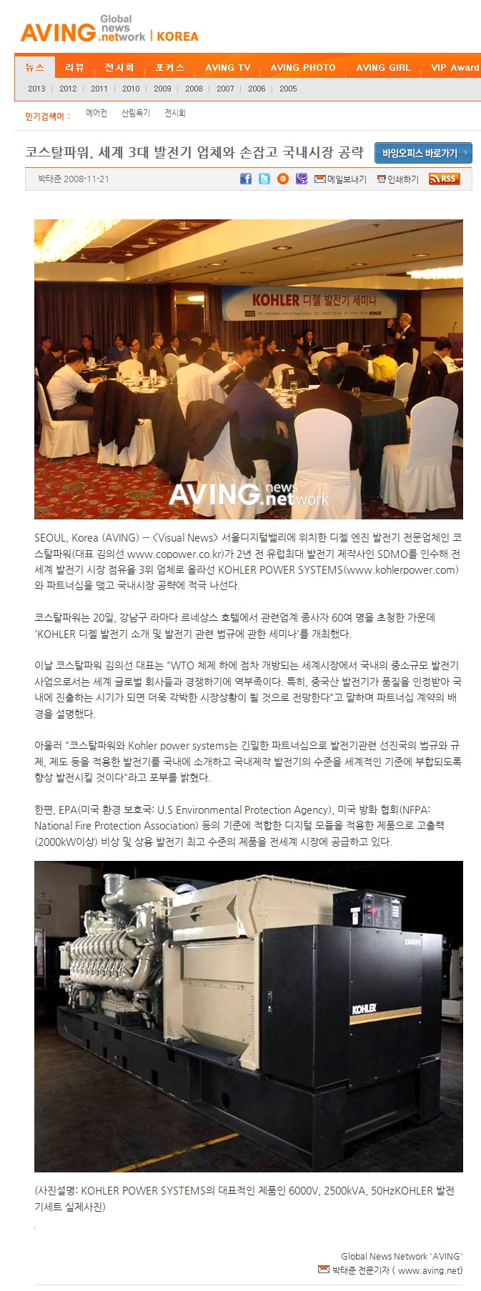 코스탈파워, 세계 3대 발전기 업체와 손잡고 국내시장 공략